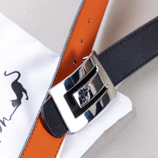 Black and Orange Chaton Reversible Leather Belt