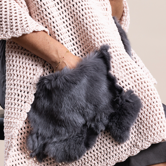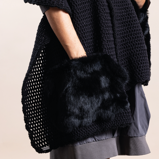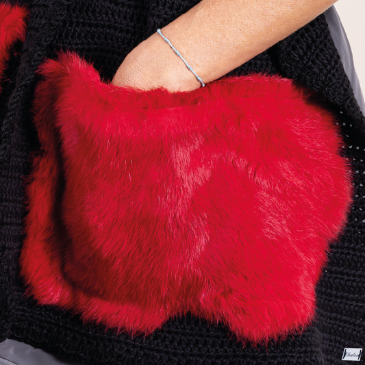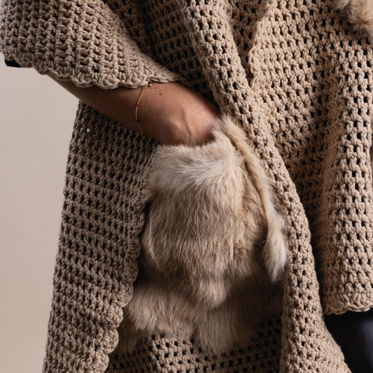 Pink and Beige Crochet Scarf With Real Fur Pocket