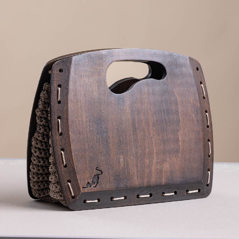 Our unique Brown Persian Bag is an exceptional accessory crafted from the highest quality imported German wood, with a touch of crochet knitted using the finest polyester and cotton yarn.