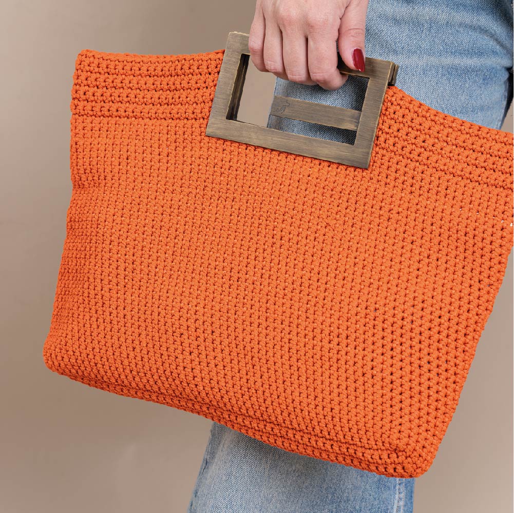 Introducing our Orange Siamese Handcrafted Crochet Bag, handcrafted from the highest quality polyester and cotton yarn. This bag gives a luxurious look with its German-imported wooden handle, ensuring both style and durability. It's the perfect choice for your everyday needs, combining practicality and elegance seamlessly.