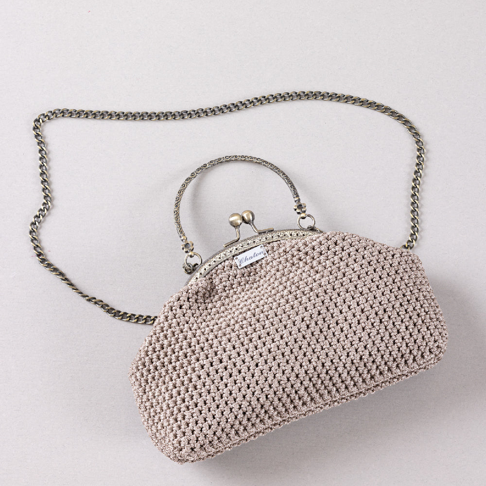 Introducing the White Munchkin Crochet Bag, a lovely accessory to enhance your style. This bag is handcrafted with intricate crochet in pure white. It comes with a shiny silver handle and chain for a touch of glam. Whether you're going to a special event or a regular day out, the White Munchkin Crochet Bag adds a touch of charm to your look.